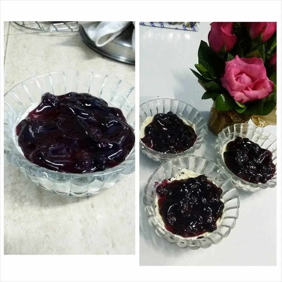 สุดท้าย นำบลูเบอร์รี่กระป๋องมาราดไว้ข้างบนสุด เป็นอันเสร็จเรียบร้อยคร๊า สรุปว่ารอดนะค่ะ 555