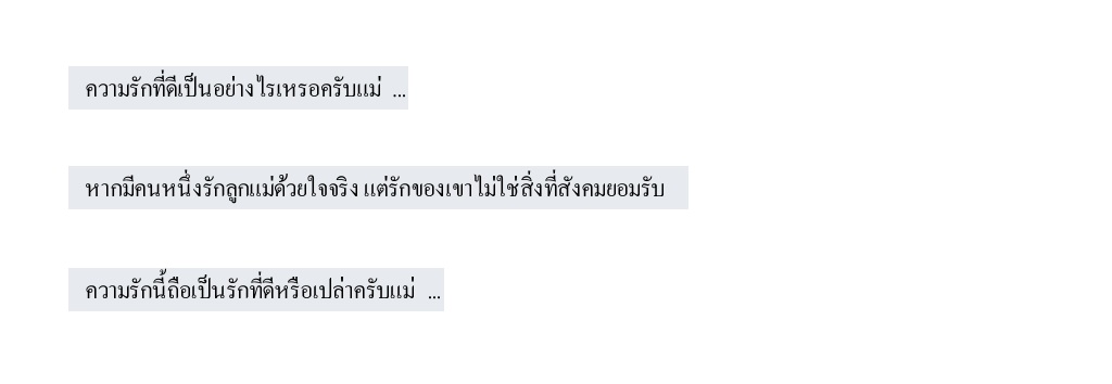 แต่ในที่นี้จากประโยคข้างต้น แค่อยากให้มองตัวคำพูดแล้วแสดงความคิดเห็นน่ะค่ะ โดยไม่ได้อิงเฉพาะเจาะจงว่าเป็นเรื่องชายรักชาย