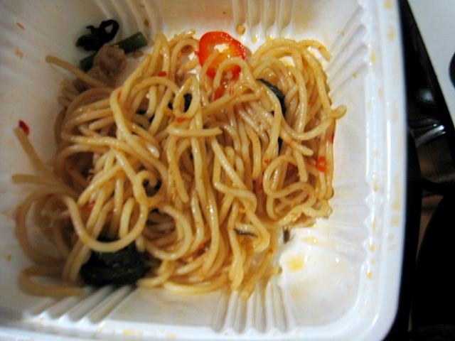 หยิบออกจากถุง และเปิดฝากินเลย กินไปได้ซักพัก กำลังเอาส้อมดึงเส้นขึ้น..............