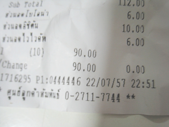 ปล. บิลที่ถ่ายมาให้ดู เมื่อกี๊เลยค่ะ เวลา 22.51 - 22/07/57 ถ่ายแยกสาขากับส่วนเวลาเพราะว่ากล้องไม่ค่อยชัดค่ะ