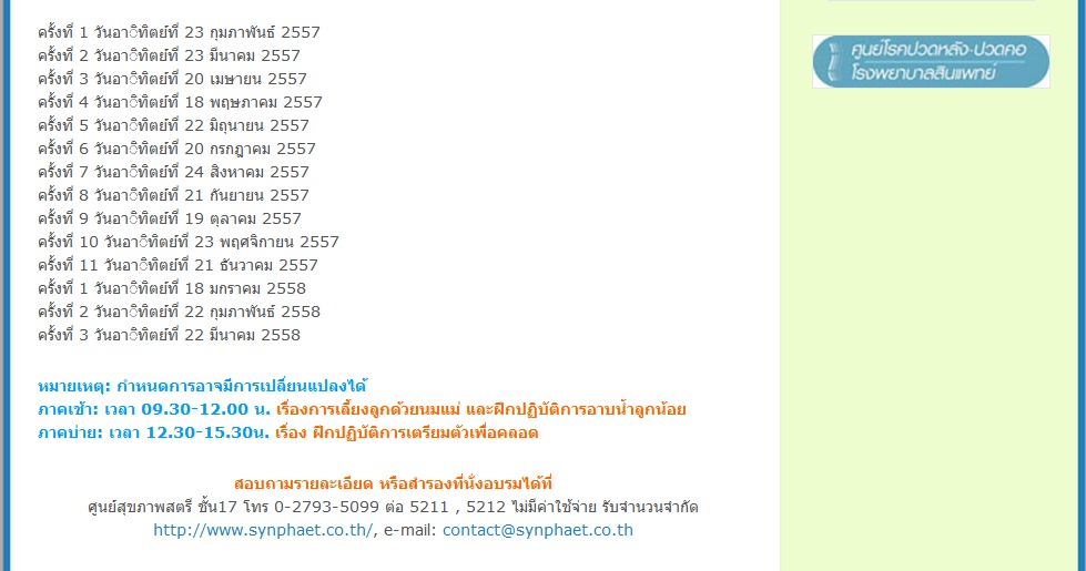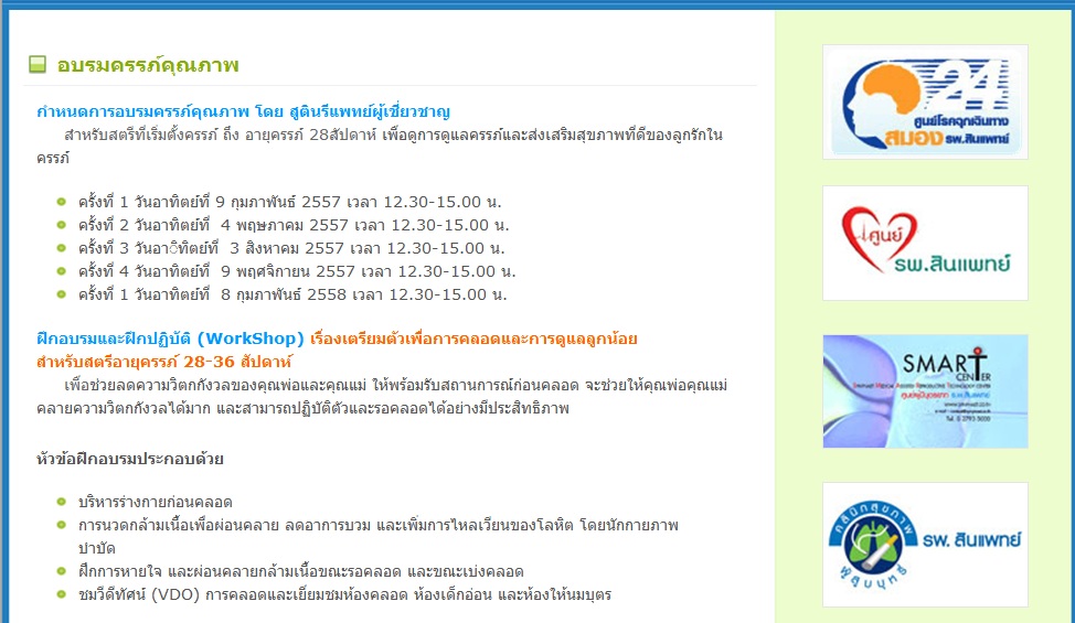 แจ้งโปรแกรม อบรมการตั้งครรภ์ รพ. สินแพทย์ (ฟรี ไม่มีค่าใช้จ่าย)