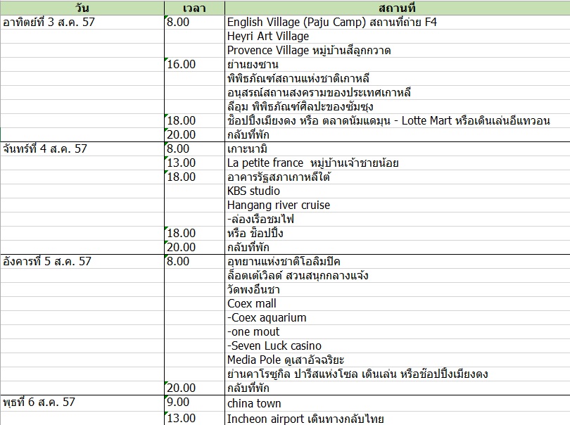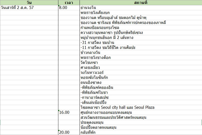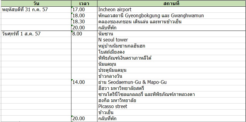 ตารางการเที่ยวโซล วันที่ 31 ก.ค. – 6 ส.ค. 57 ไปกับครอบครัว