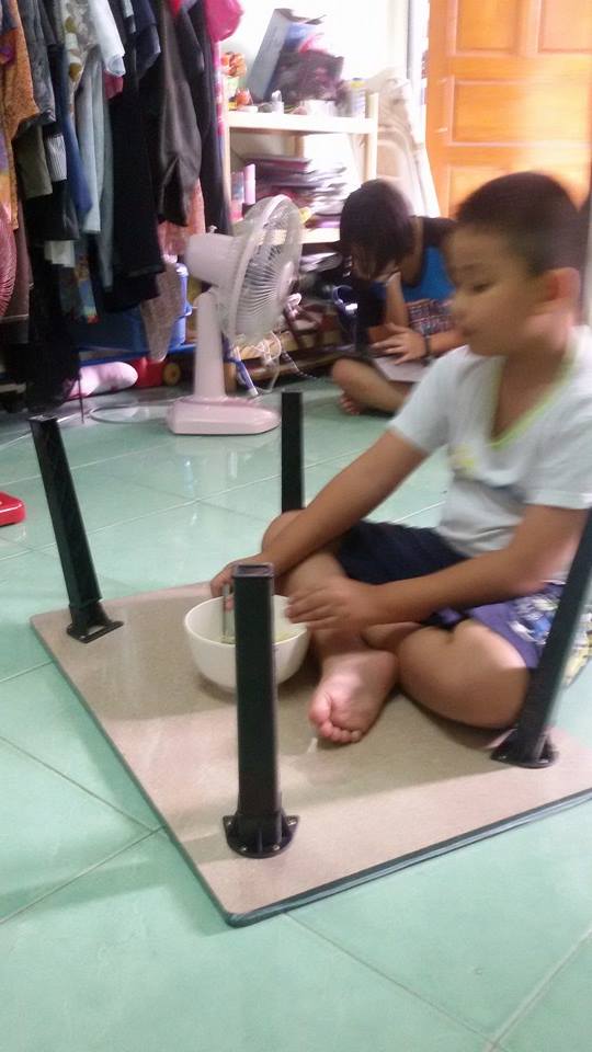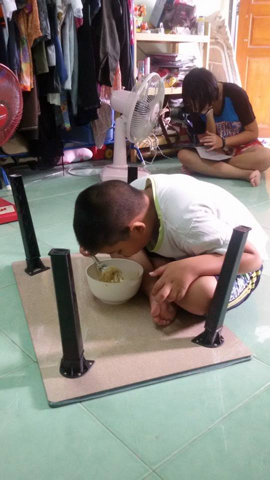 แม่พร้อม.......ก็เอาโต๊ะมาตั้งกินซิลูก(...แม่นั่งเย็บกางเกงเจ้าพร้อมอยู่...พูดไปแต่ยังไม่ได้เงยหน้า..)