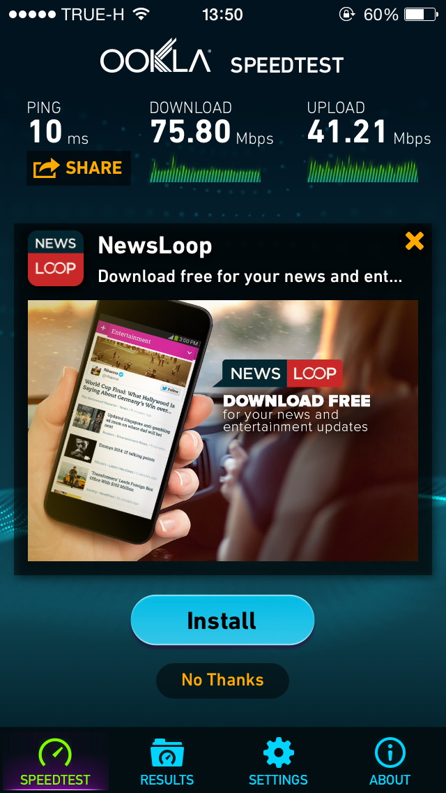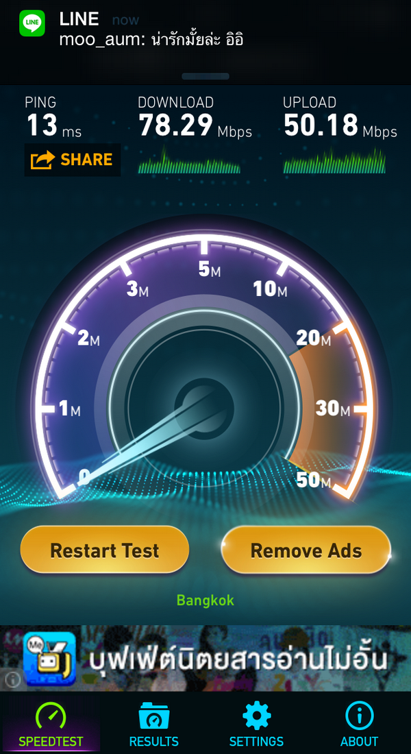 เลยลองต่อเล่นดู แล้วกดอัพเดทแอพเร็วมาก ผมเลยลองสปีดเทสดู ผลก็คือ........