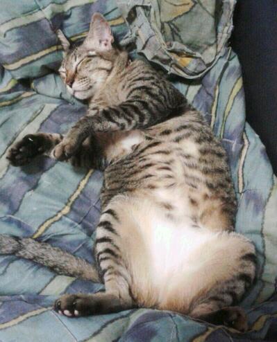 คือถ้าผมหรือแฟนผมอยู่บ้านก็จะปล่อยอยู่นอกบ้าน ถึงเวลาเย็นจะเรียกเข้าบ้าน ไม่เคยอึหรือฉี่นอกบ้าน นางจะกลับมาอึฉี่ในห้องน้ำที่บ้านตลอด. คือถ้าอึก็จะอึที่พื้นห้องน้ำ ผมจะมีหน้าที่เก็บใส่ถุงไปทิ้ง แต่ถ้าฉี่ นางจะปีนขึ้นไปฉี่บนชักโครก แต่ฉี่เสร็จก็เปิดแน็บไม่ยอมกด ก็หน้าที่ผมอีกต้องตามกดให้นาง. กินอาหารกระป๋องสลับอาหารเม็ด สองมื้อ เช้ากะเย็น นอนห้องแอร์ ตื่นปลุกผมโดยขึ้นมานั่งบนตัวผมแล้วเรียกแง๊วๆให้ผมเปิดประตูให้ ผมต้องตื่นเพื่อไปรอกดชักโครกให้นาง เสร็จแล้วเข้ามานอนต่อ. จะตื่นอีกทีก็พร้อมผมตอนเช้า ถ้านางปลุกแล้วผมไม่ยอมตื่นก็จะเริ่มกัดที่หัวแม่โป้งเท้า เวลาเค้ากินอาหารเราต้องยกไปเสริฟถึงที่ ไม่เดินเข้ามา