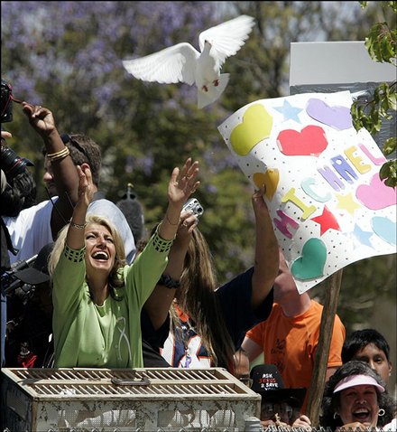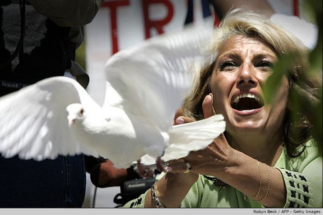 F a r i b a G a r m a n i - แฟนเพลงหญิงชาวอิหร่านวัย 44 ปี ( ในขณะนั้น ) ได้ปลดปล่อยนกพิราบสีขาวโบยบินขึ้นสู่ท้องฟ้า