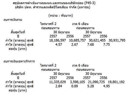 PTTEP งบไตรมาส 2/2557 มาแย้ว ปันผล 3 บาท