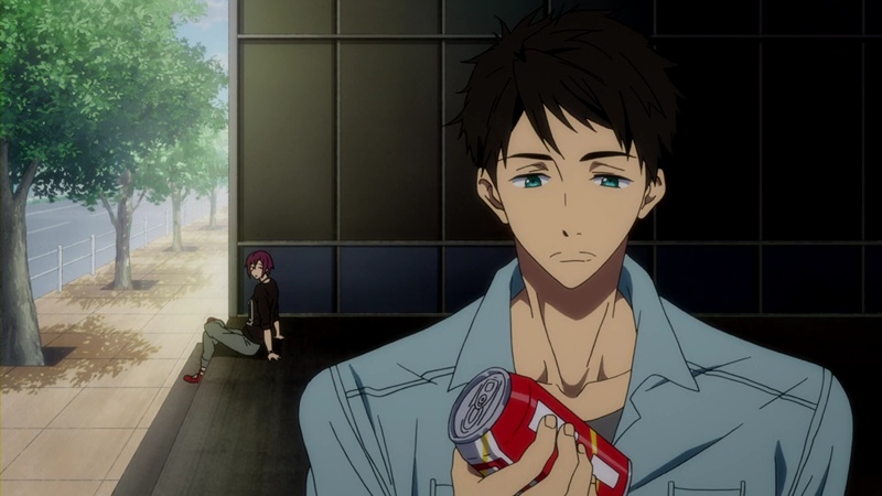 รินกับโซสึเกะแยกออกมานั่งรอด้านนอก โซสึเกะกดตู้น้ำซื้อโคล่ากระป๋อง