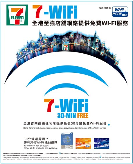 ไม่ต้องเสริชหาไวไฟฟรีที่ฮ่องกงอีกต่อไป 7-11 ฮ่องกง ประกาศให้ใช้ ไวไฟฟรี 30 นาที