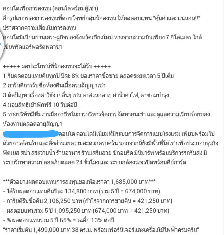 เห็นคอนโดนี้ประกาศขาย แล้วการันตีผลตอบแทน