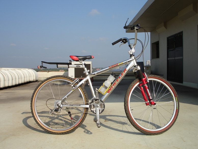 เห็นเป็นจักรยานเสือภูเขา แต่เป็นแฮนด์คล้ายๆแบบในรูปนี้ แต่ไม่ได้ยกขนาดนี้ แต่แฮนด์จะโค้งเข้ามาหาตัวเราพอที่จะไม่ต้องโถมน้ำหนักกดลงไป