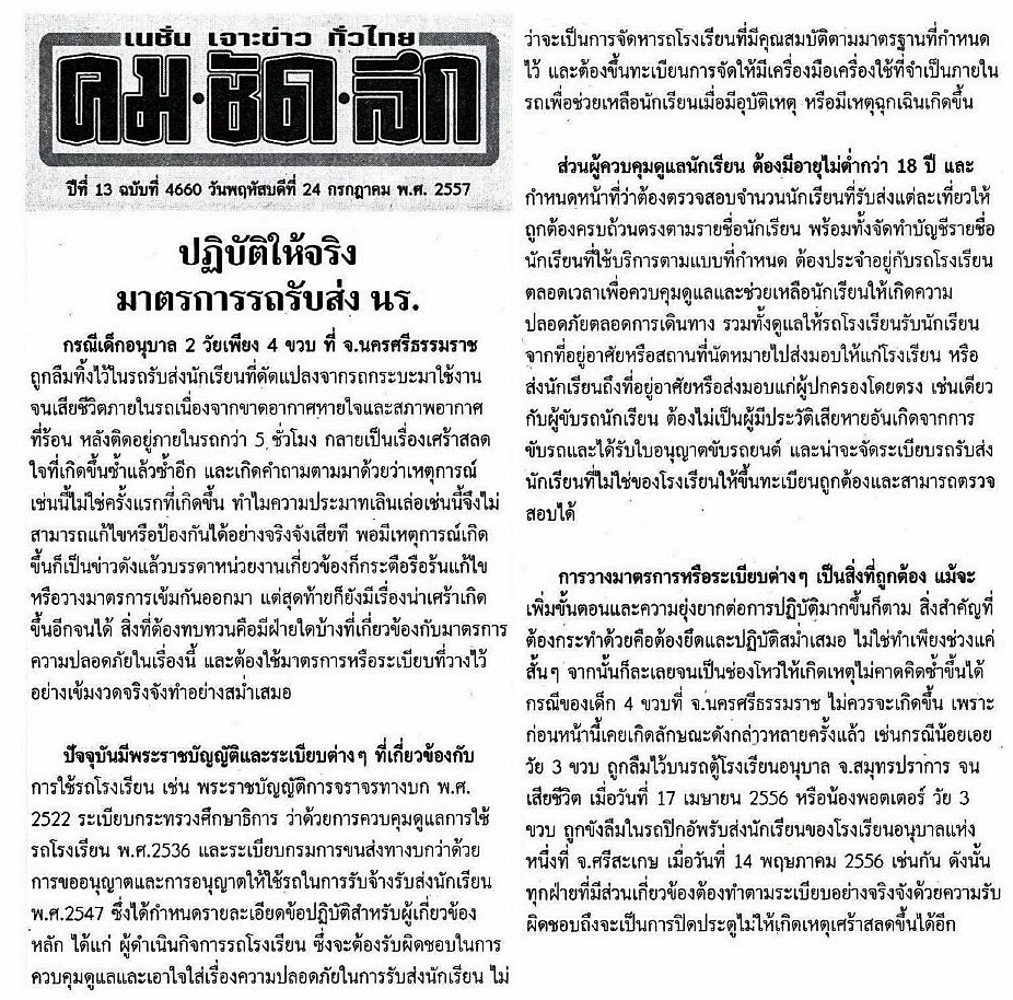 24/07/57 คม ชัด ลึก คม ชัด ลึก: ปฏิบัติให้จริงมาตรการรถรับส่ง นร.