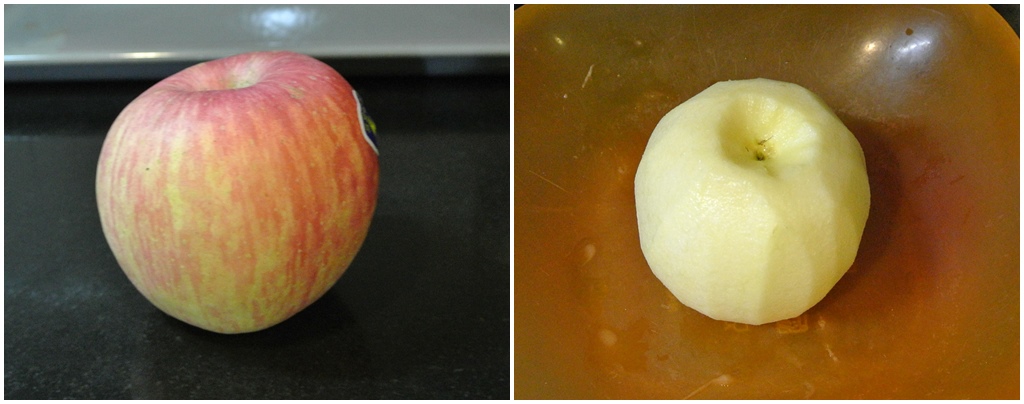 แกงกะหรี่ญี่ปุ่นจะใส่ผลไม้ปั่นละเอียดลงไปด้วย ใช้แอปเปิ้ล 1 ลูก ปอกเปลือก