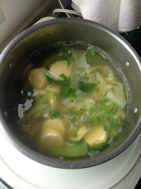ต้มจับฉ่ายปีกไก่บน ( เราไม่ใช้น้ำมันในการผัดผักนะคะ ใช้การต้มอย่างเดียวค่ะ )