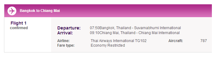 ผลการจองจากหน้าเว็บ ระบุเป็นรุ่น 787