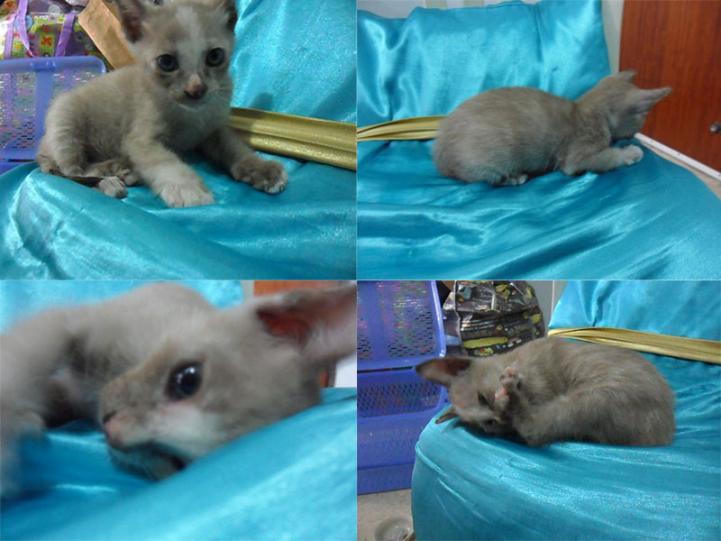 คิดว่าน่าจะมีคนเอามาทิ้งไว้ แล้วก็คงหลงมาที่บ้าน  เพราะดูตัวก็สมบูรณ์ดี และก็ไม่กลัวคน  สอบถามคนในหมู่บ้านแล้ว ก็ไม่มีใครเป็นเจ้าของ T_T  สงสัยคงโดนพามาจากที่อื่นแน่เลย    ตอนนี้ตัว จขกท. เองมีแมวที่เลี้ยงอยู่แล้ว 3 ตัว ซึ่งมีแมวป่วยด้วย 1 ตัว  จึงไม่สามารถรับเจ้าเหมียวตัวนี้มาเลี้ยงอีกตัวได้ค่ะ ทางที่บ้านไม่ยอม  จขกท. ลองสอบถามเพื่อนบ้าน และญาติๆ แล้ว ยังไม่มีใครรับเลี้ยงเจ้าเหมียวเลยค่ะ  ยังไงคงต้องหาเพื่อนๆ พี่ๆ ใจบุญจากในพันทิปที่ต้องการอุปการะเจ้าเหมียว หรือมีคนรู้จักที่ต้องการรับเลี้ยง ก็สามารถติดต่อมาที่เบอร์ 082-273-2157 นะคะ  ขอบคุณค่ะ