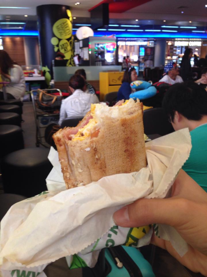 เข้าไปแล้วก็มีความคิดจะเตรียมกินหาอะไรกินไปจากสนามบินเลย เพราะไม่ได้ซื้อข้าวบนเครื่อง 555 (ด้วยความงกจริงจังและคิดว่าอาหารบนเครื่องไม่อร่อย) ก็เลยนั่งกิน Subway ระหว่างทางไป GATE กำลังมีโปรโมชั่น ราคาดี อิ่มท้อง 149 บาท สำหรับ Breakfast ค่ะ (ปกติราคา Subway ที่สนามบินจะแพงเป็นพิเศษ) โปรฯ นี้เป็นแฮม ไข่ดาวไมโครเวฟ 1 ฟอง มะเขือเทศสด เลือกขนมปังและซอสตามใจฉันเหมือนเคย มาพร้อมกับ น้ำส้ม สแปลช ถือว่าอิ่มมาก...