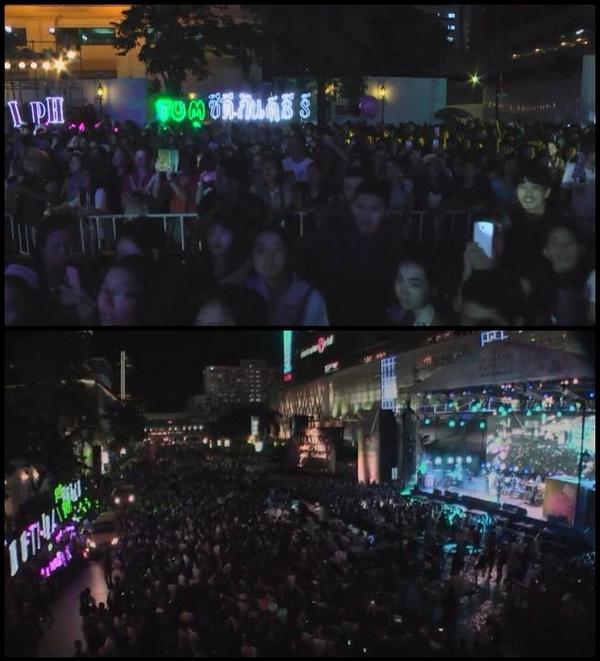 พอถึงเซนทรัลเวิลด์ ในที่สุดก็ทัน ก็รีบเบิ่งไปตรงป้ายไฟใหญ่ทันที คนในงานเยอะมากๆเลย