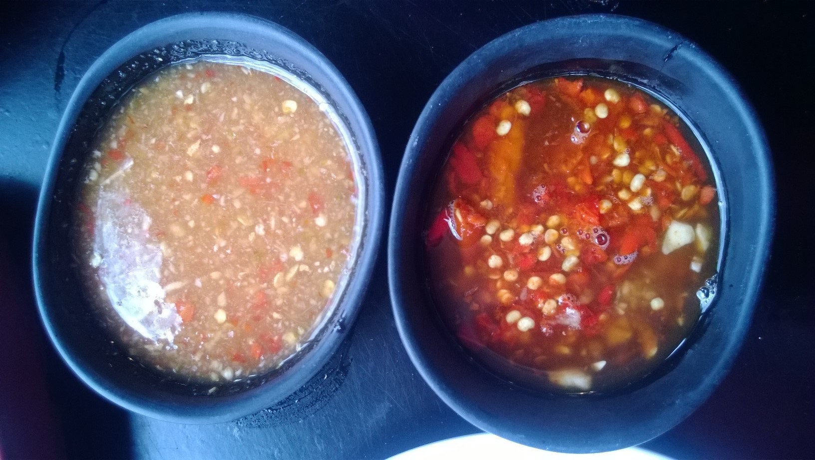 น้ำจิ้มที่นี่จะมีสองอย่างค่ะ น้ำจิ้มซีฟู๊ด และ ซอสดำญี่ปุ่นค่ะ