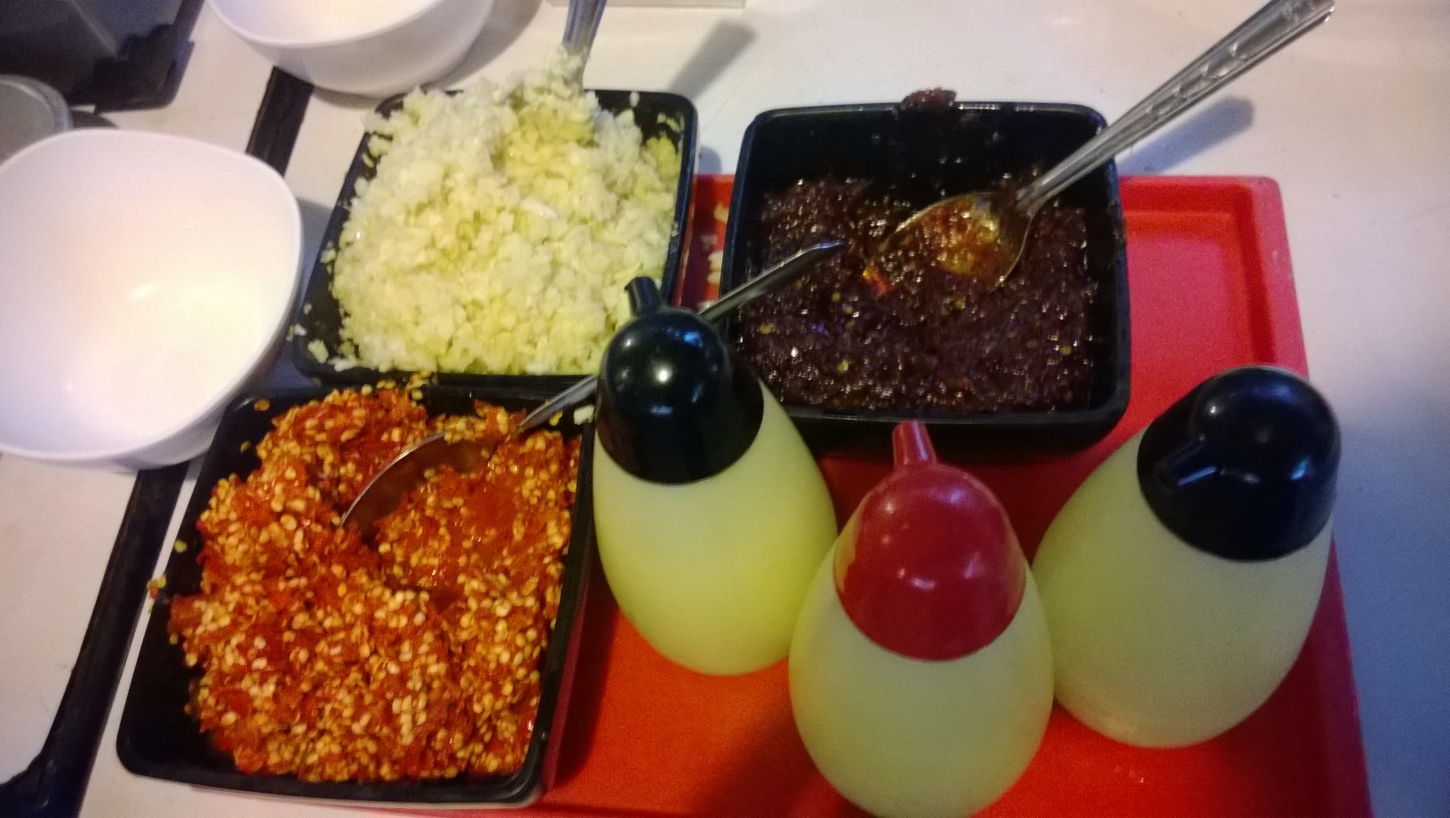 มี พริก กระเทียม มะนาว โคชูจัง (น้ำพริกเกาหลี) ไว้ปรุงเพิ่มรสชาติ