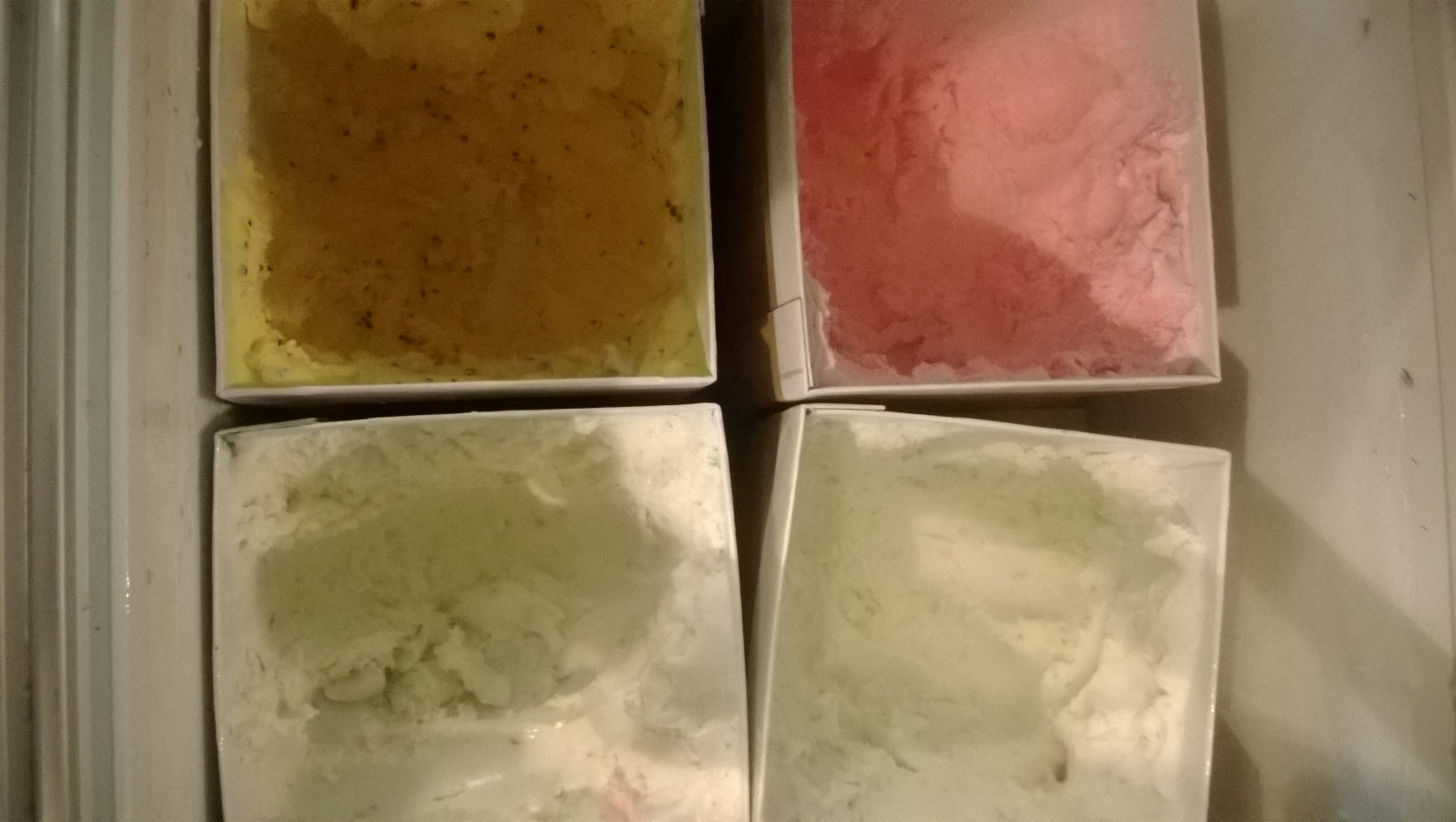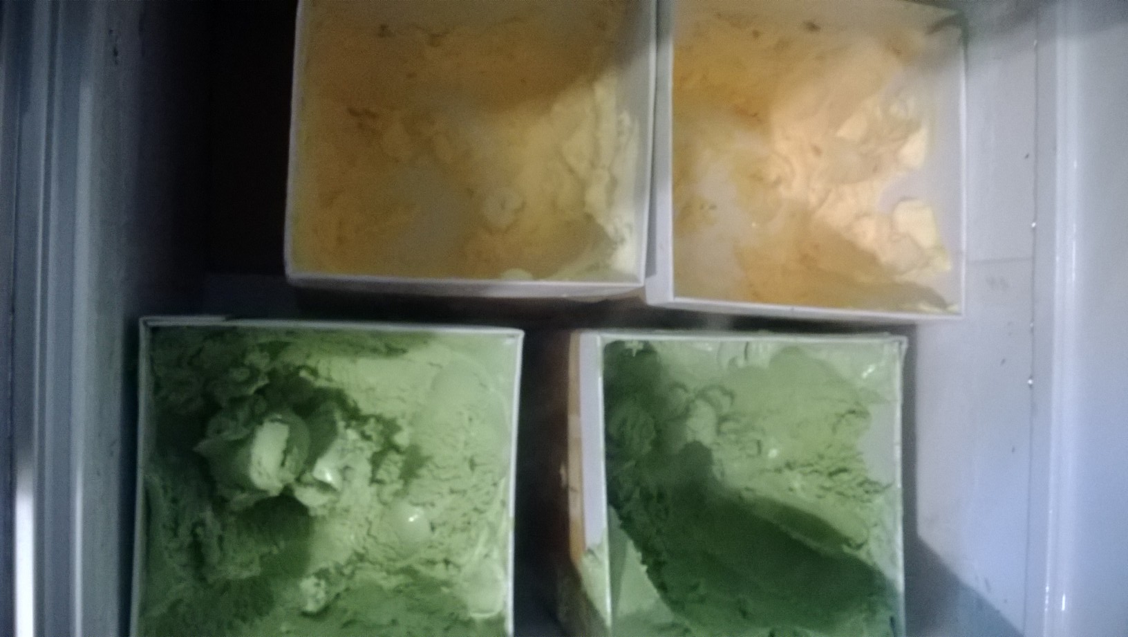 เริ่มอิ่มก็มีไอศกรีมไว้บริการ มีทั้งหมด 5 รสค่ะ ชาเชียว ส้ม สตรอบอรี่ กะทิ และชอกโกแลตชิพ