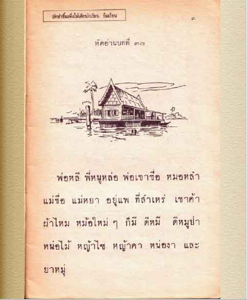 แบบหัดอ่านหนังสือไทย เล่มปลาย ชั้นประถมปีที่ 1 เป็นหลักสูตรกระทรวงศึกษา ใช้ตั้งแต่ปี 2503 ถึง ปี 2520 คือ รุ่นก่อนที่จะถึง มานีมานะ ชูใจ ที่เราเรียนตอนเด็กๆ นั่นแหละ พอได้อย่าแล้วสนใจมากว่า ป.1 สมัยก่อนเค้าเรียนกันขนาดนี้เลยหรือ ไม่สงสัยเลยว่าทำไมคนจบ ป.4 สมัยนั้น เค้ามีความรู้ความสามารถเลี้ยงลูกจยจบปริญญาได้ แล้วคนที่เป็นเจ้าสัว คนรวยเจ้าของกิจการต่างๆ ก็จบ แค่ ป. 4