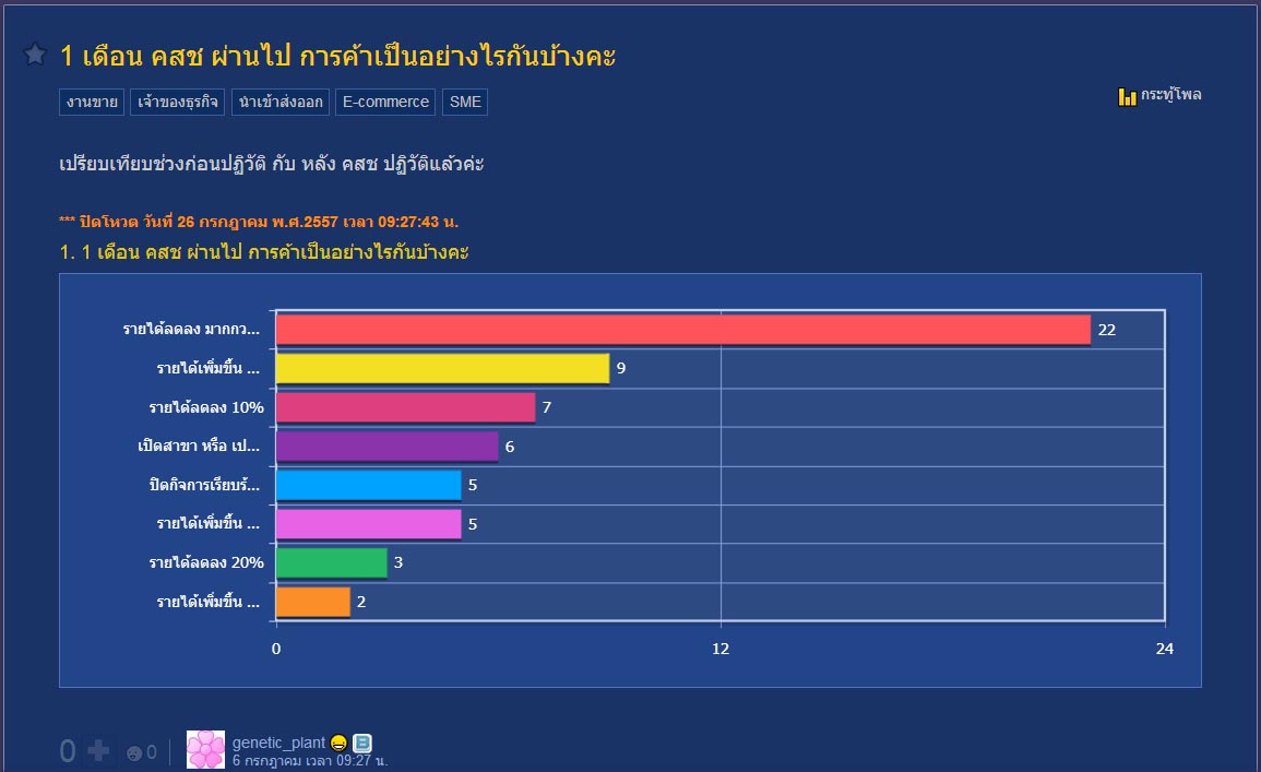 ส่ง ผล กระทู้โหวตค่ะ "1เดือน คสช ผ่านไป การค้าเป็นอย่างไรกันบ้างคะ"