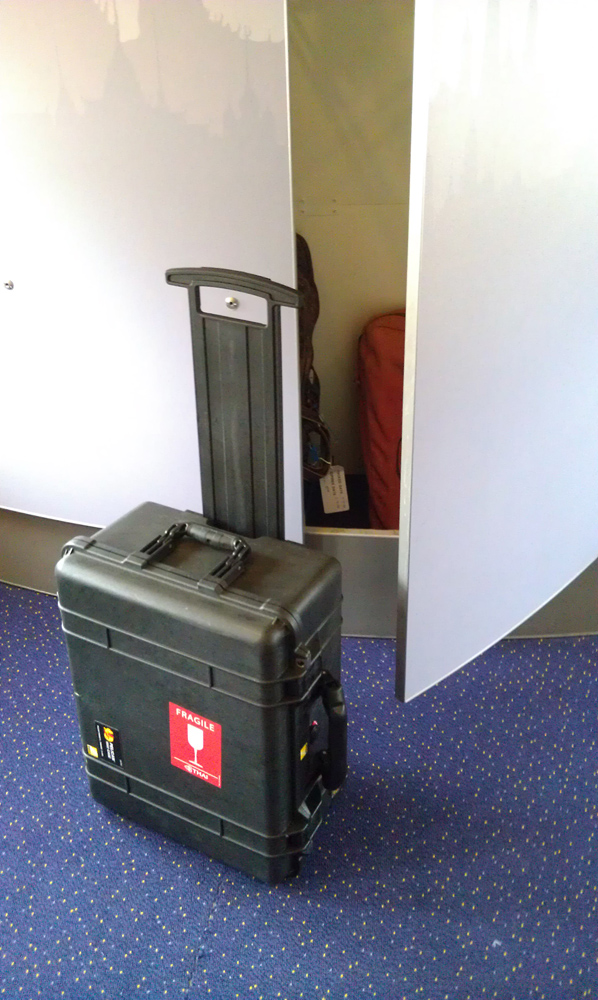 บางครั้งลำบากไม่สามารถเก็บบนช่องเก็บของบนเครื่องบินได้ ต้องเอาไปไว้ที่เก็บของลูกเรือ
