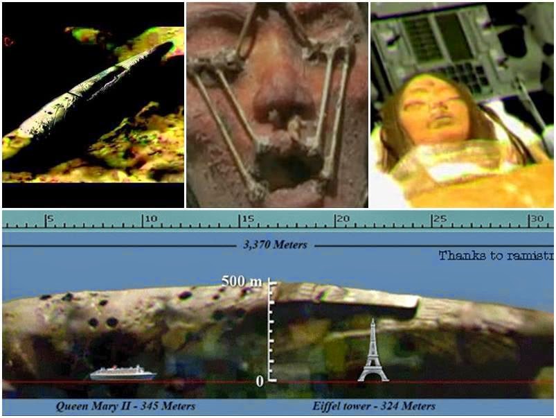 ข่าวสำคัญที่อยากจะบอก เกี่ยวกับยานลำนี้ ซึ่งอยู่บนดวงจันทร์มาแล้วหลายปี ตัวยานมีความยาวสองไมล์ ความสูงมากกว่าหอไอเฟล (Eiffel Tower) ข้างในมีโหลแก้วบรรจุตัวอ่อนมนุษย์ต่างดาว ขนาด 10 เซนติเมตร จำนวนมาก แต่ถูกทำลายไปไม่เป็นตัว ที่ชัดเจน คือ ตัวยานเก่ามากแล้ว มีอักขระบนกระดาษ เป็นอักษรหางยาว ๆ มีศพผู้หญิงคล้ายคนจีน ที่สวยจนเรียกว่า “โมนาลิซ่า” (Mona Lisa) ไม่เน่าเบื่อย เมื่อนำศพกลับขึ้นยานลูก ก็เอาแท่งที่ตรึงหน้าศพออก และนี่เป็นภารกิจร่วมของนักบินอวกาศอเมริกัน และ รัสเซีย เป็นภารกิจเพื่อการสำรวจในยานนี้โดยเฉพาะ ป่านนี้คงวิเคราะห์ ดีเอ็นเอ – DNA หญิงคนนี้ได้แล้ว