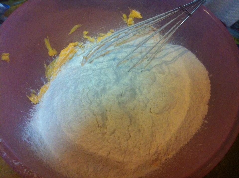 ลำดับที่สอง ใส่แป้งลงไปแล้วคนเข้าด้วยกัน