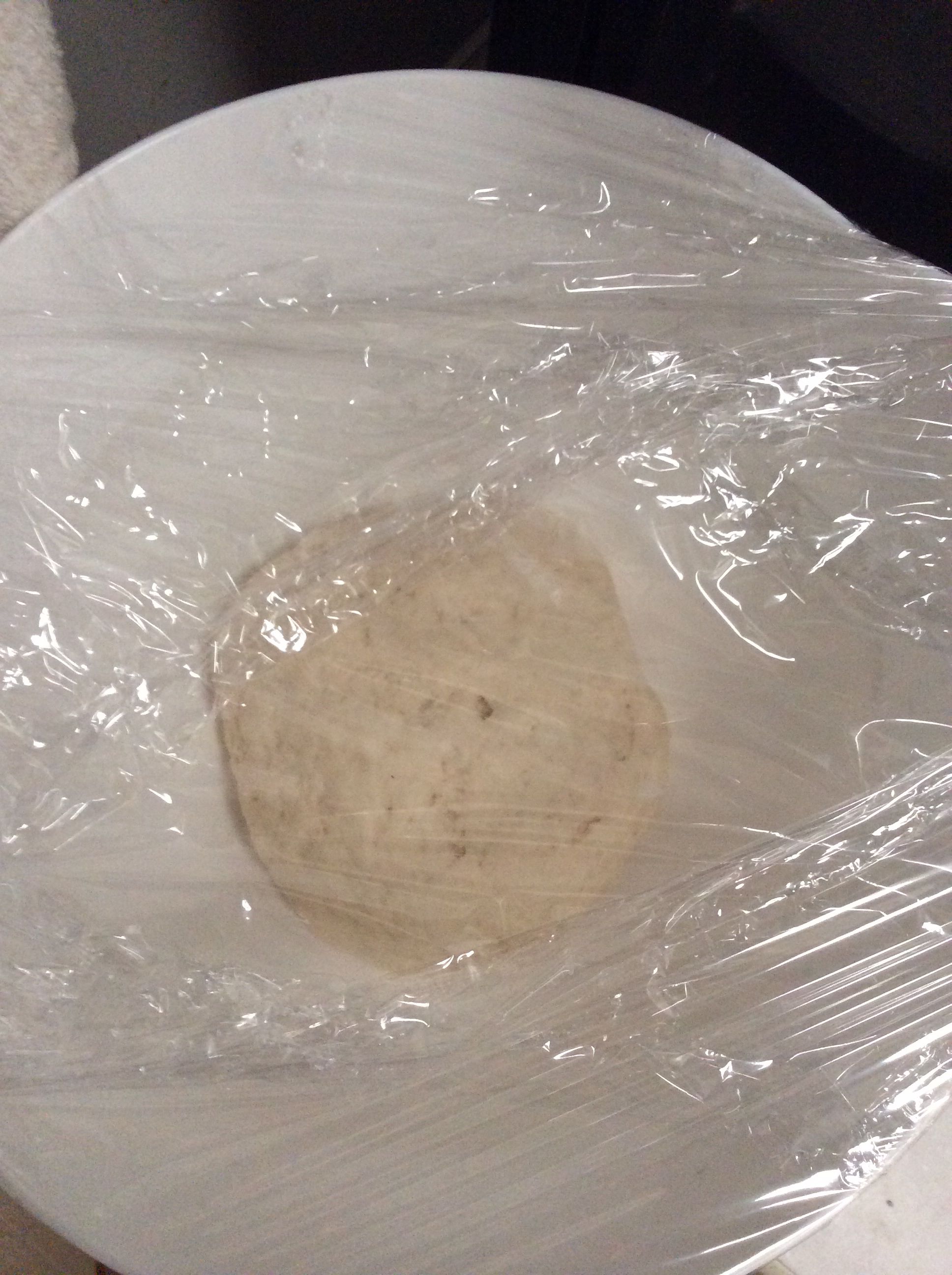 แบ่ง3แล้วก็ใช้ไม้นวดแป้ง ให้เป็นวงกลม แล้วก็เอาช้อนส้อมมาจิ้มให้เป็นรู เพื่อให้แป้งตอนที่ไปอบจะได้ไม่ฟู กลายเป็นพิซซ่าหนานุ่มไปนะ
