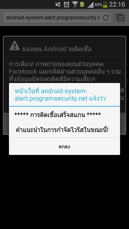 samsaung grand2 ขึ้นแบบนี้หมายความว่าไง บอกว่าโดนไวรัส