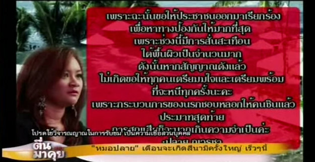หลังจาก ประกาศเตือน สึนามิ วันที่ 15 - 17 มิถุนายน 2557 และ วันที่ 20 - 25 อาจจะเดือนมิถุนายนหรือกรกฏาคม 2557 โดย หมอปลาย ณวรชา พินิจโภคากร หมอดูชื่อดังในโลกในโซเชียลเน็ตเวิร์ก ที่ผ่านมา โลกออนไลน์วิพากษ์วิจารณ์คลิปวิดีโอ รายการดังถึงความเหมาะสม ซึ่งได้มีการออกมาประกาศย้ำทำให้ประชาชนแตกตื่น ซึ่งคาดว่าการออกมาพยากรณ์ดังกล่าวเป็นการหลอกลวงประชาชน