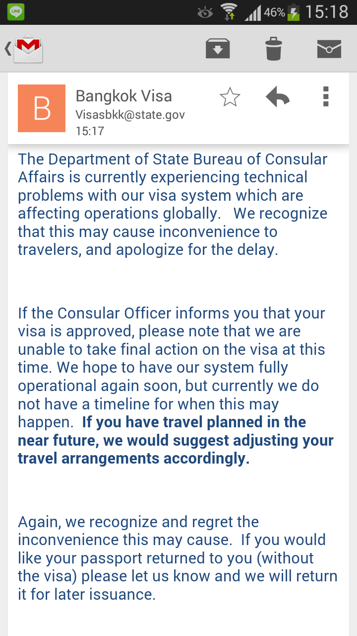 ให้รอไปก่อน พอวางสายจากเจ้าหน้าที่ เราเลยส่งอีเมล์ไปทางฝ่ายวีซ่า