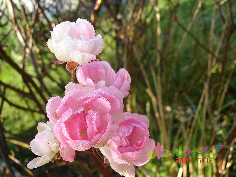 ช่วงนี้ไม่ค่อยมีดอกไม้ The fairy ก็โผล่มาแค่ช่อเล็กๆ 2-3 ช่อ ส่วนกุหลาบต้นอื่นเงียบสนิท เหลือแต่กิ่งก้าน