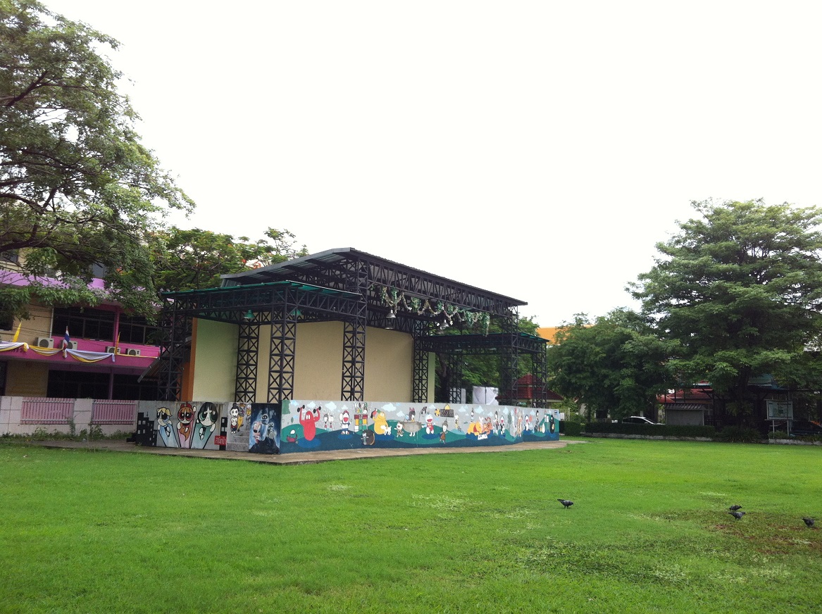 สนามหญ้าไว้เล่นกีฬาต่าง ๆ มีเวทีสำหรับจัดกิจกรรม