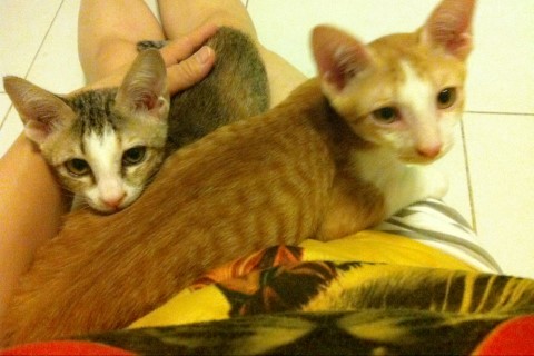 http://pantip.com/topic/35282643 เหมียวน้อย เพศชายทั้งคู่ อายุ 6-7 เดือน...ต้องการบ้านค่ะ เก็บมาจากวัดใกล้หัวลำโพง ตอนนั้นป่วยเป็นหวัดตาแฉะ ตอนนี้หายดี แข็งแรง และ ทำหมันแล้ว วัคซีน..ถ่ายพยาธิ...ไม่ม