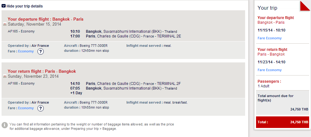 เห็นว่า Qatar พึ่งออกโปรมา จึงลอง search ดูตั่วไปยุโรป กลับเจอของกลุ่ม sky team ช่วงปลายปีราคาค่อนข้างใช้ได้เลยครับ ไม่ถึง 25,000 บาท รวมทุกอย่างแล้ว- - - สามารถเลือกบินตรงไปกลับปารีสได้