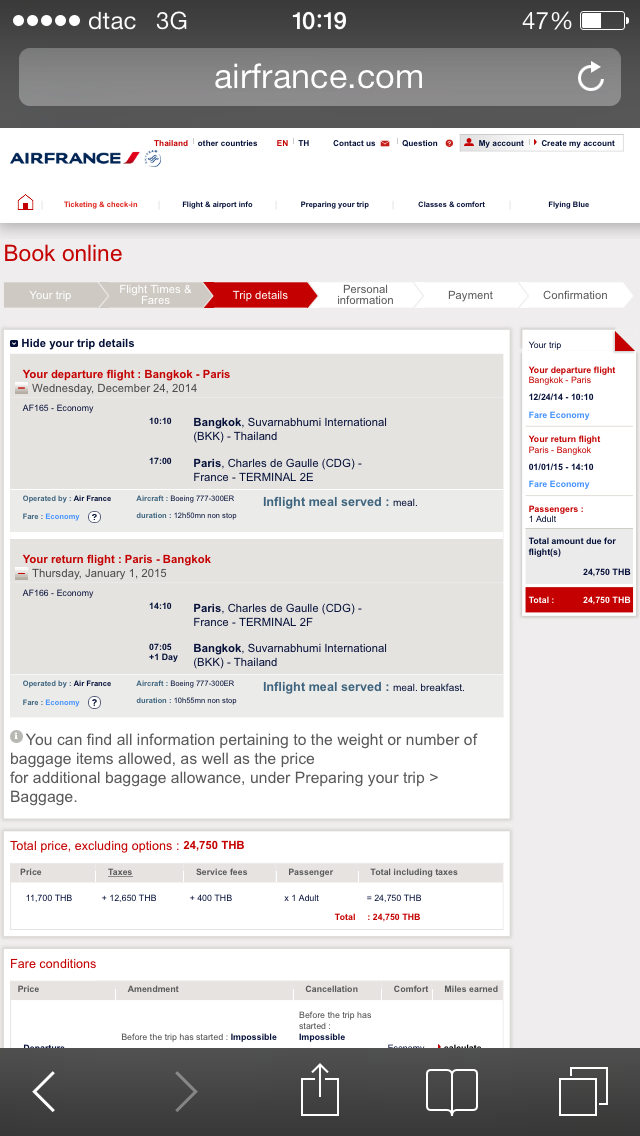 ตั๋วเครื่องบิน airfrance BKK-CDG 24,750 ครับ บินตรง ช่วงปีใหม่