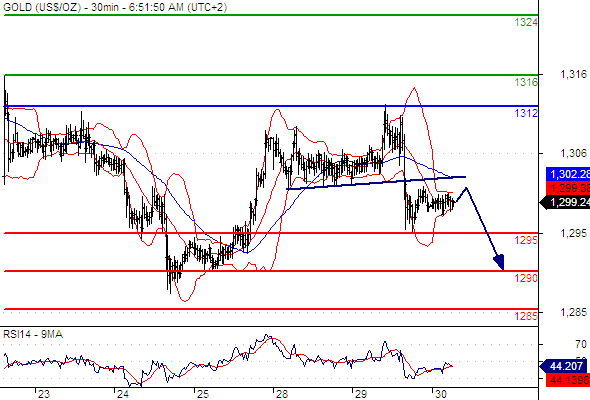Our preference: Short positions below 1312 with targets @ 1295 & 1290 in extension.