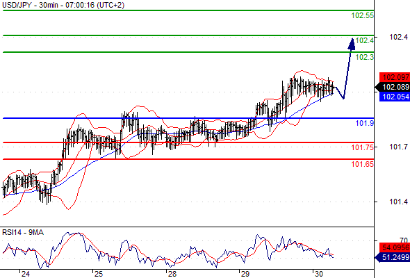 Our preference: Long positions above 101.9 with targets @ 102.3 & 102.4 in extension.