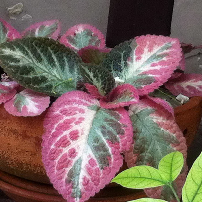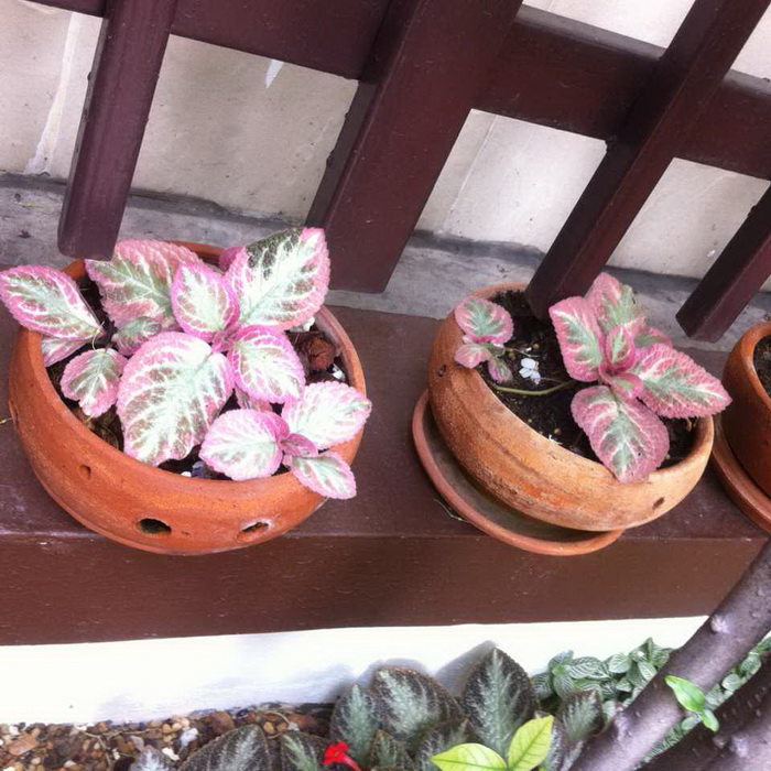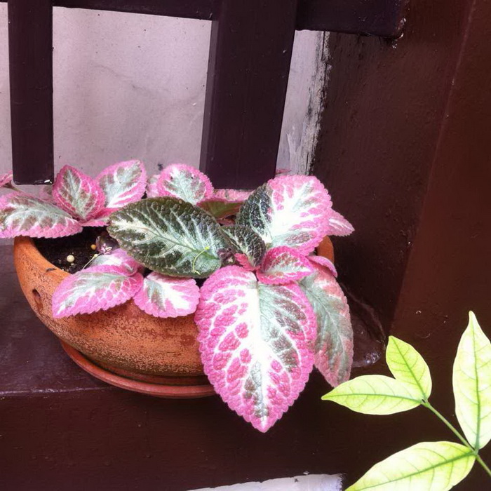 ใบของต้นนี้เป็นสีชมพูสลับสีเขียว ดอกสีแดงสด แต่ของแอนไม่ค่อยออกดอก แต่ออกต้นเล็กมาเรื่อยๆ