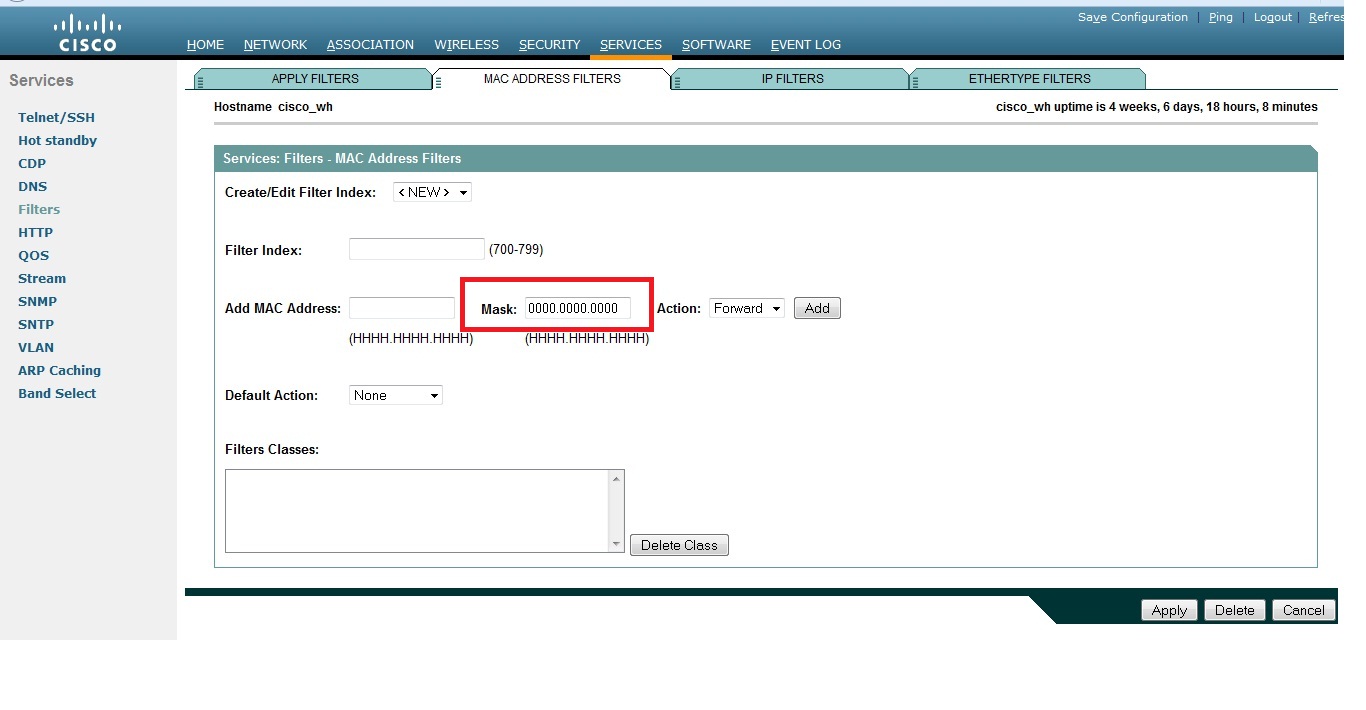 ผมใช้ Access Point Cisco จะทำการ Block Mac Address ในส่วนของรูปด้านล่าง Mask คือต้องใส่อะไรครับ ช่วยผมหน่อยครับ ขอบคุณครับ