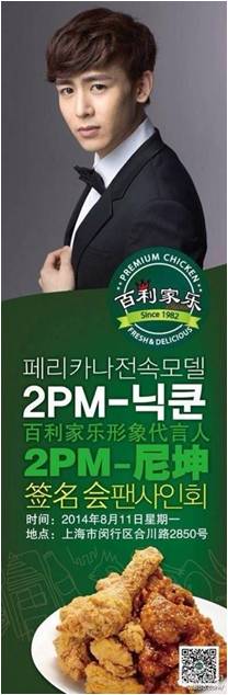 และ 2pm เป็นฟรีเซ็นเตอร์ Pelicana Chicken ที่ประเทศเกาหลี