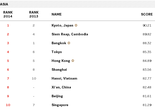 Kyoto ซึ่งเคยเป็นที่ 2 รองจากเราเมื่อปีที่แล้ว ปีนี้ Bangkok ปล่อยให้แซง