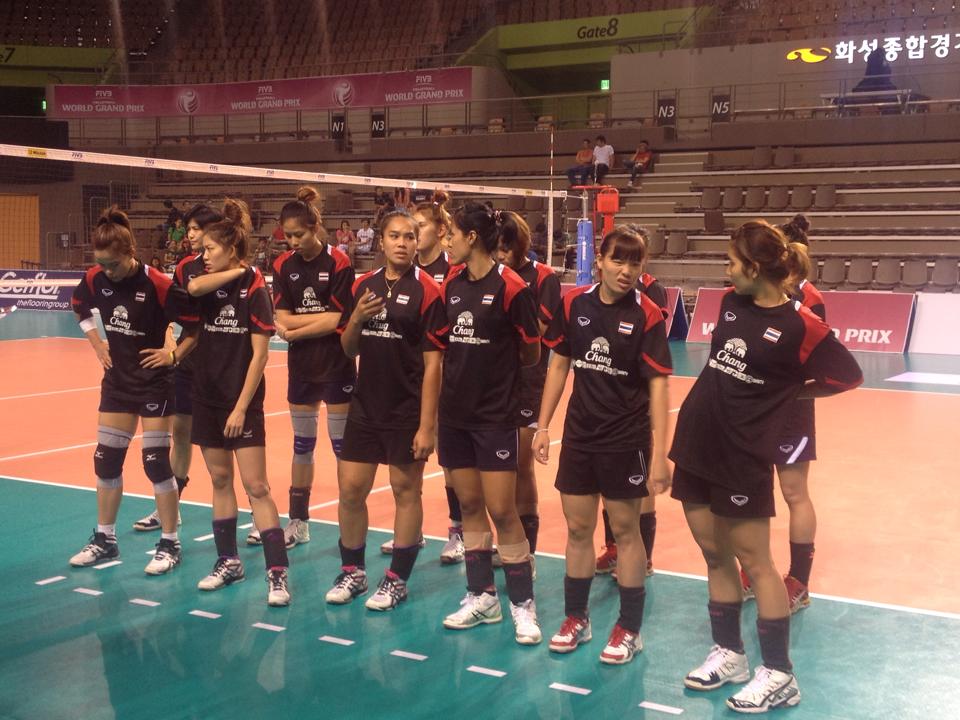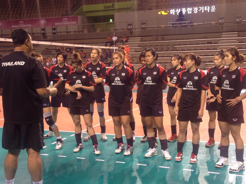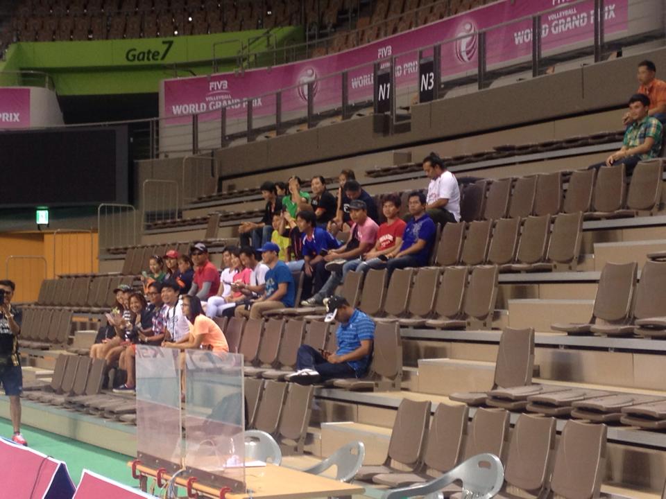 มีกองเชียร์ชาวไทยที่ทำงานที่ซูวอน เกาหลีใต้ มาชมการซ้อมของตบยางสาวไทยด้วย