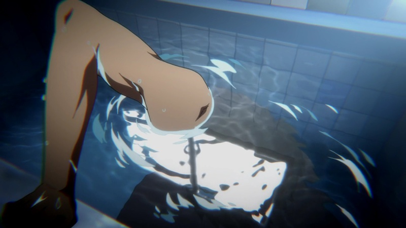 ที่โรงเรียนซาเมะสึกะ รินเสร็จการฝึกแล้วลุกขึ้นจากสระ