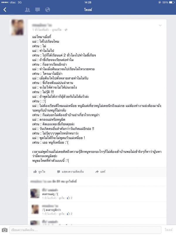 ไม่ได้มีเจตนาจะประจานนะคะเพราะในรูปเค้าได้มีการเซนเซอร์ชื่อเจ้าของเฟชบุ๊คไว้แล้ว แต่เห็นแล้วมันอดไม่ได้จริงๆค่ะ
