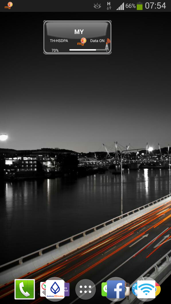 เนื่องจากได้แจ้งย้ายเครือข่ายไว้และเมื่อเช้าของวันที่ 8/5/57 ก็ได้มีการตัดสัญญาณจาก DTAC ผมจึงเอาซิม MY มาใส่เข้าไป คลื่นขึ้น Internet ใช้ได้ โทรออกได้ แต่ติดปัญหาคือ ไม่สามารถโทรเข้าได้เลยไม่ว่าจะเคร