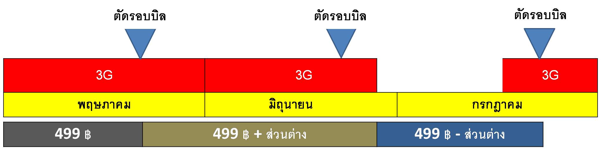 เรื่องมีอยู่ว่า ปกติแล้วใช้แพคเกจรายเดือน ismart 499 ของไอโฟนกับทรูเอช ก็ได้เวลาโทร (สีเหลือง) และเน็ตสามจี (สีแดง) มาตามปกติ และตัดรอบบิลทุกวันที่ 21 ของเดือน